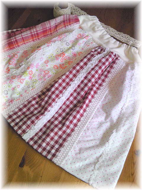 nakkuさん用に、ブロックチェックのサロペットスカートと、あとパンツを作りました~♪