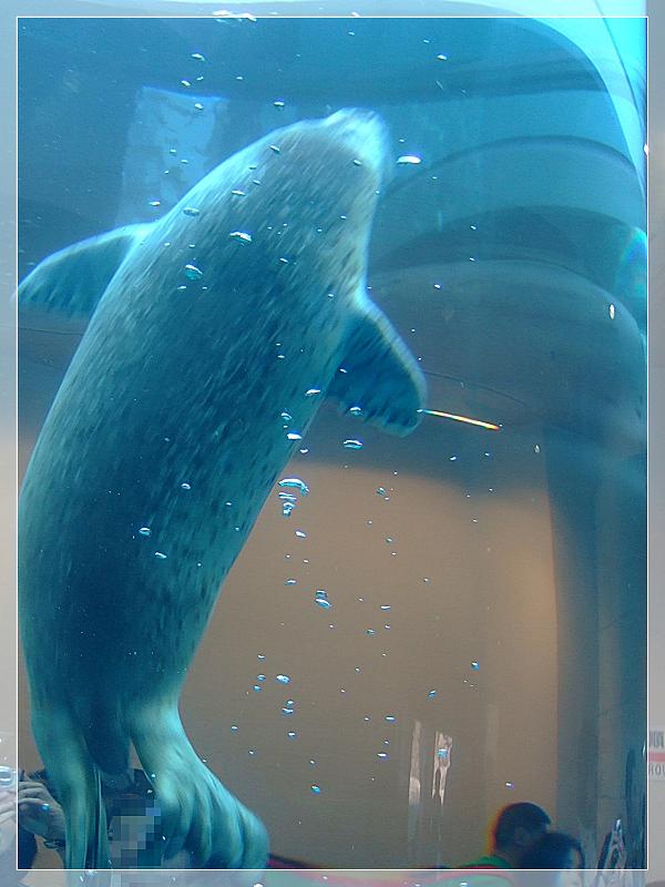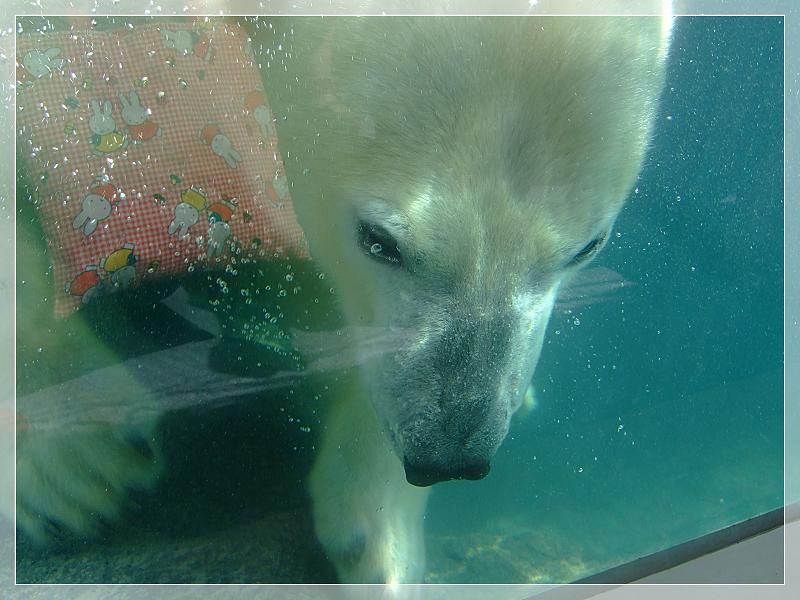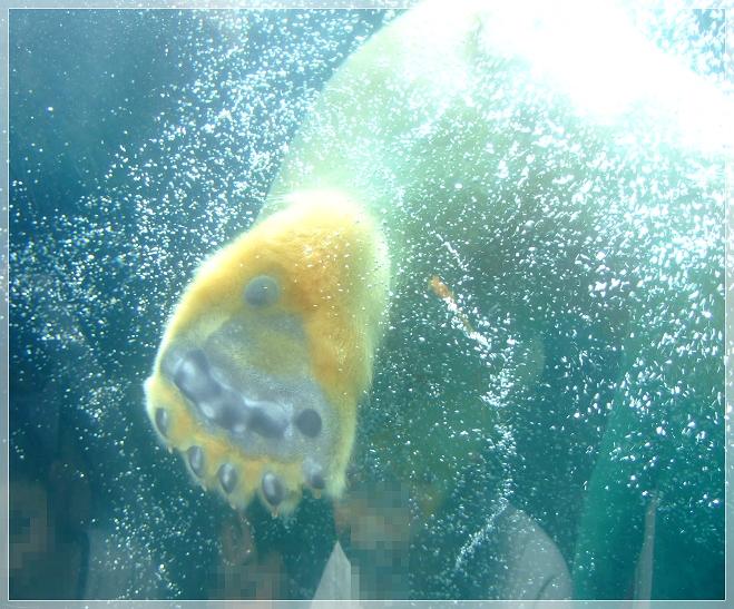 ガラス越し、間近で白くまのロッシーが泳いでる姿が♪