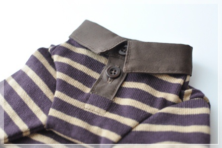 少しパープルがかったブラウンのボーダーにブラウンの襟。